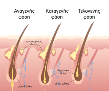 Πιο συγκεκριμένα, η τρίχα χωρίζεται σε αναγενή, καταγενή και τελογενή φάση και σε δυστροφική.